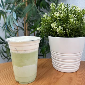 Sweet matcha green tea with steamed milk.