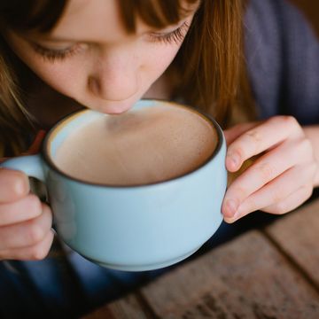 Our gourmet hot cocoa steamed to a kid friendly temperature in a kid friendly sized cup.